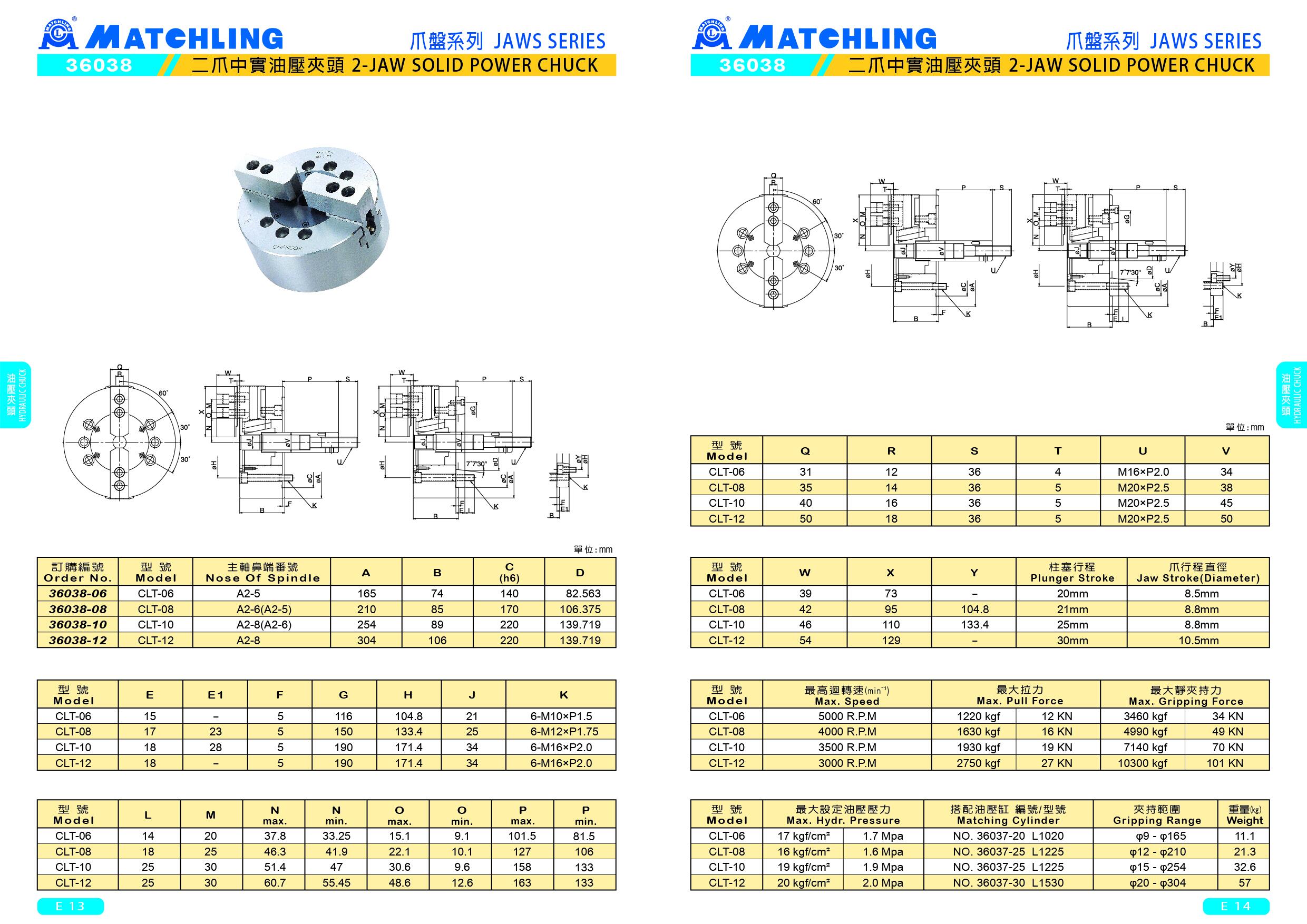 | CLT-06 | 20mm | 8.5mm | 5000 R.P.M | 1220 kgf | 3460 kgf | 34 KN |