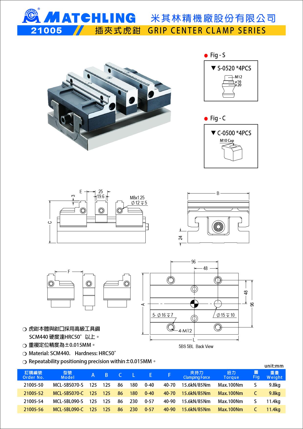 | 21005-54 | MCL-5BL090-S | 125 | 125 | 86 | 230 | 0-57 | 40-90 | 15kN/85Nm | Max.100Nm | S | 11.4 |