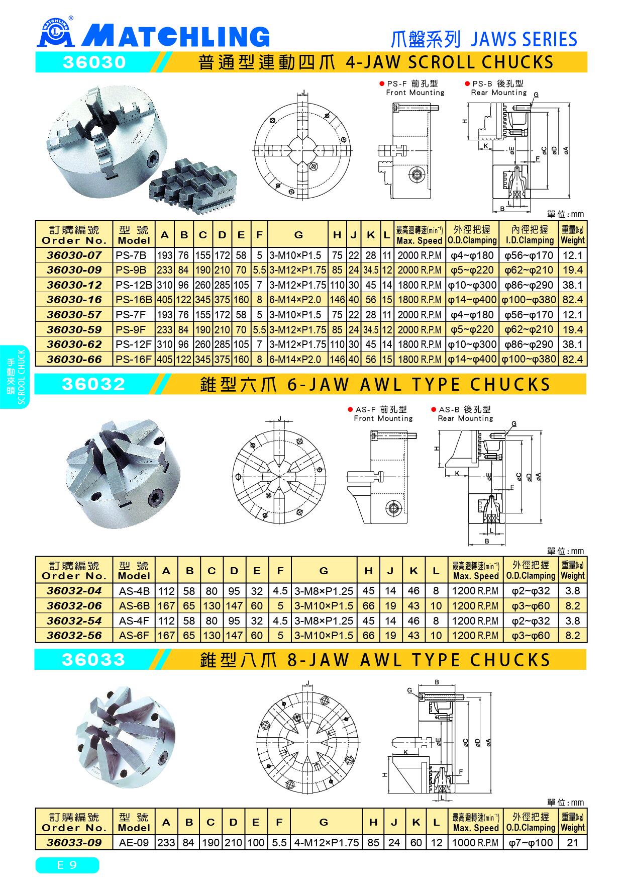 | 36032-56 | AS-6F | 167 | 65 | 130 | 147 | 60 | 5 | 3-M10xP1.5 | 66 | 19 | 43 | 10 | 1200 R.P.M | φ3~φ60 | 8.2 |