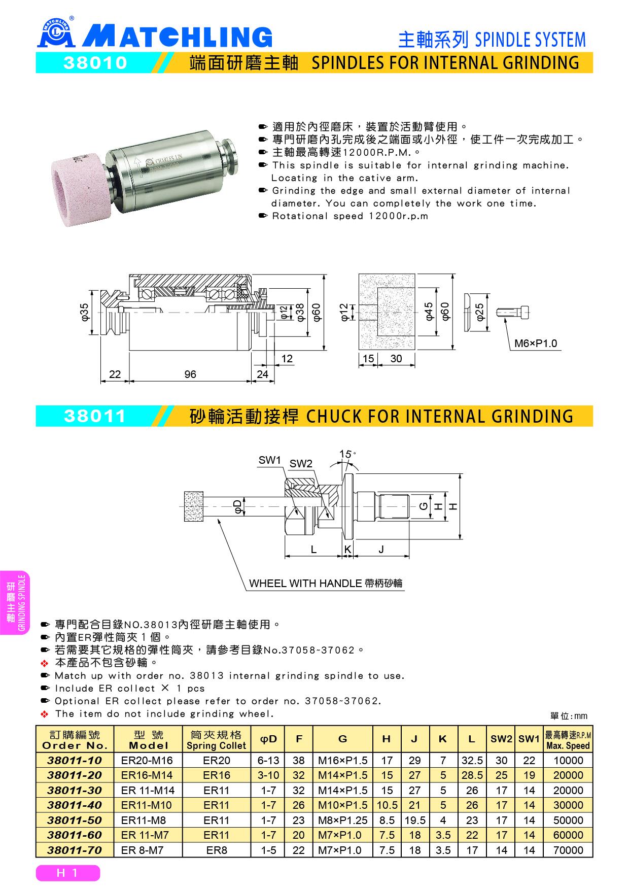 ● 專門配合目錄NO.38013內徑研磨主軸使用。