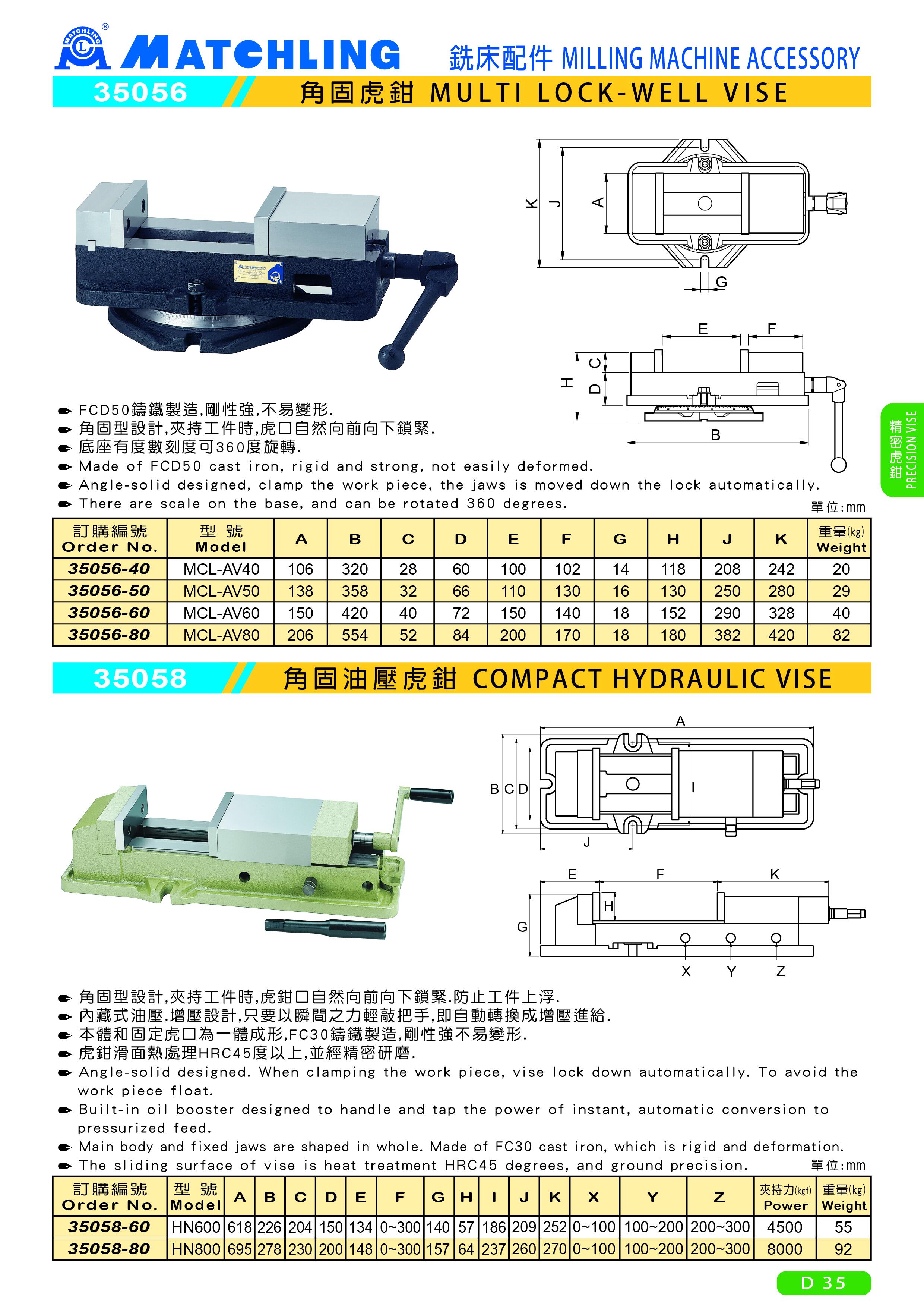 ● 虎鉗滑面熱處理HRC45度以上,並經精密研磨.