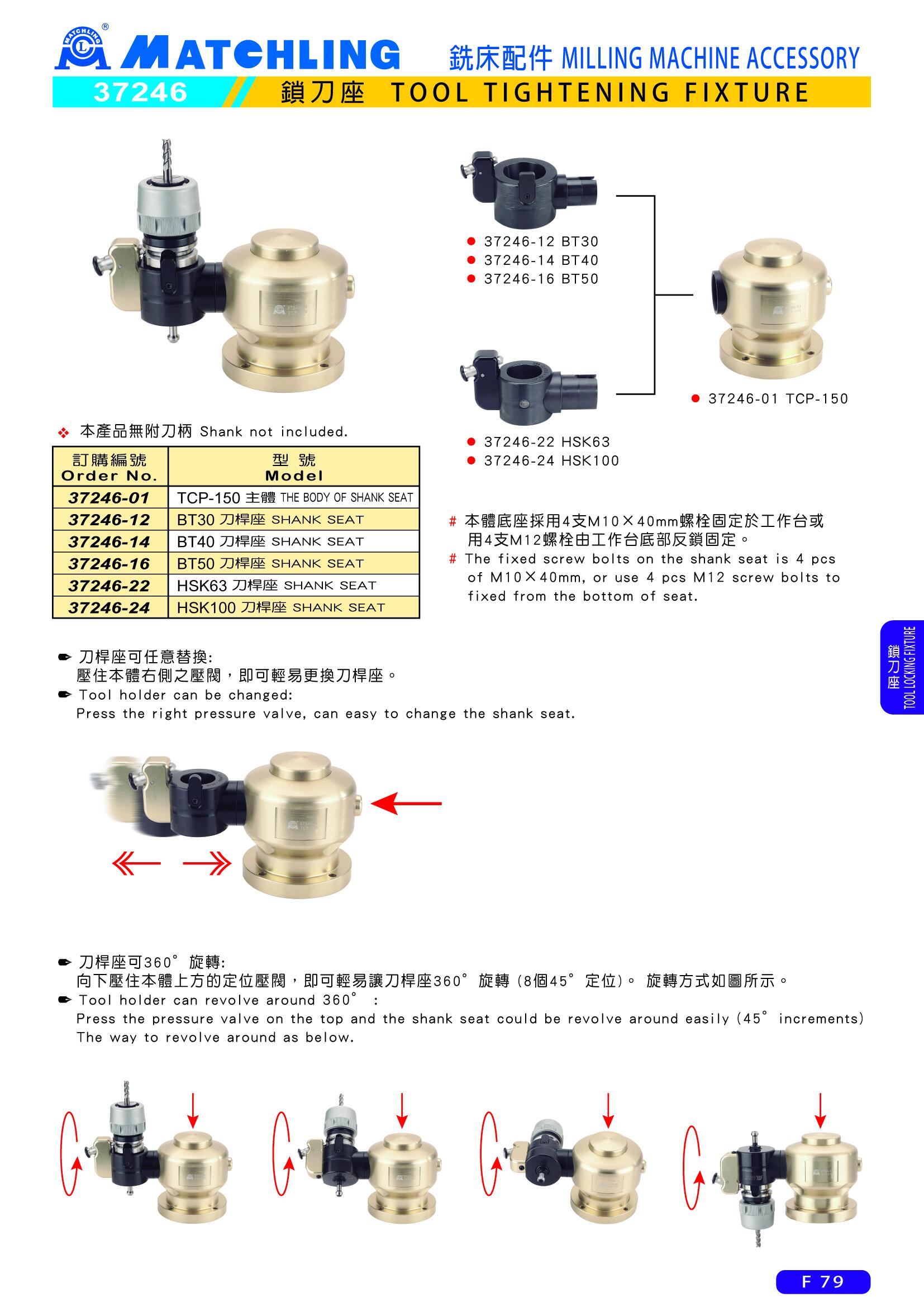 刀桿座可360°旋轉 : 向下壓住本體上方的定位壓閥,即可輕易讓刀桿座360°旋轉 (8個45°定位)。