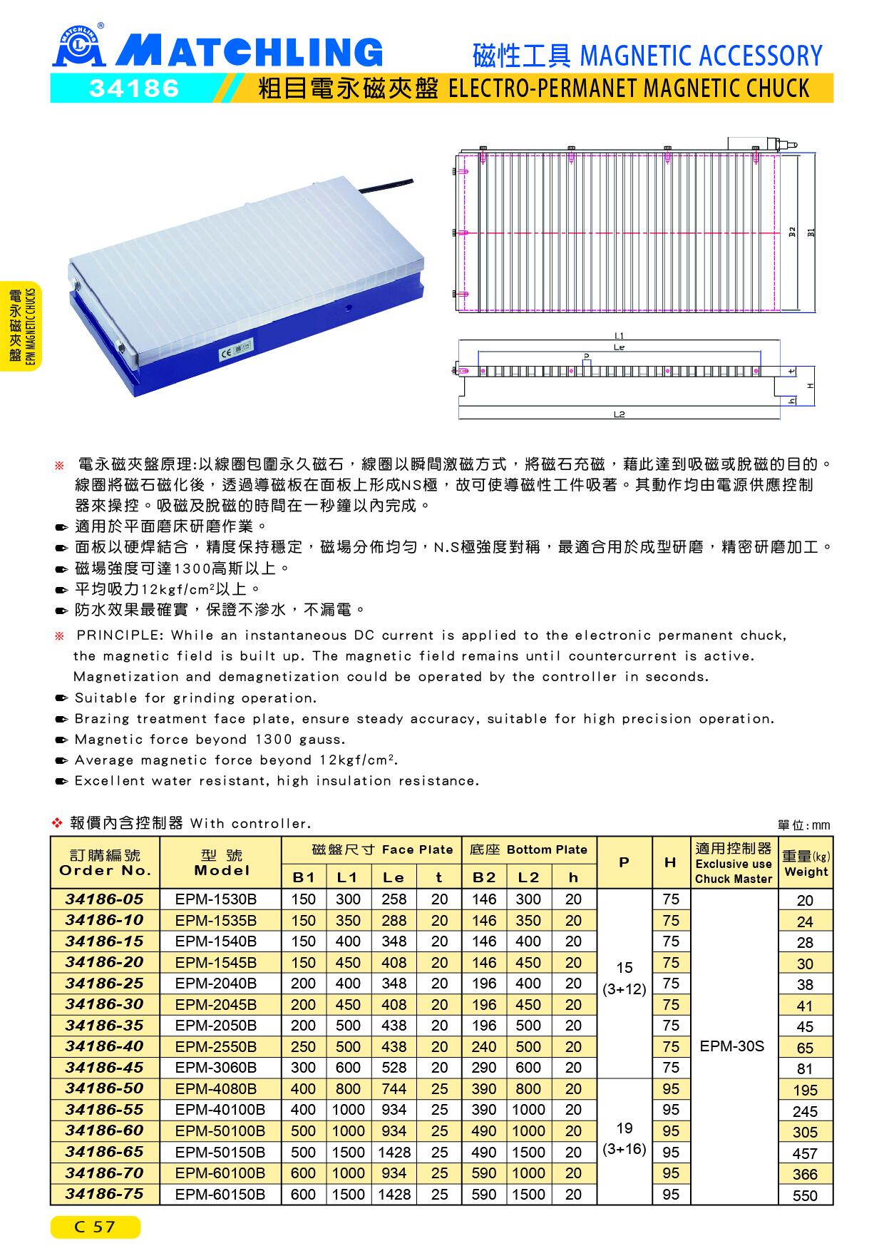 | 34186-05 | EPM-1530B | 150 | 300 | 258 | 20 | 146 | 300 | 20 | 15 (3+2) | 75 | EPM-30S | 20 |