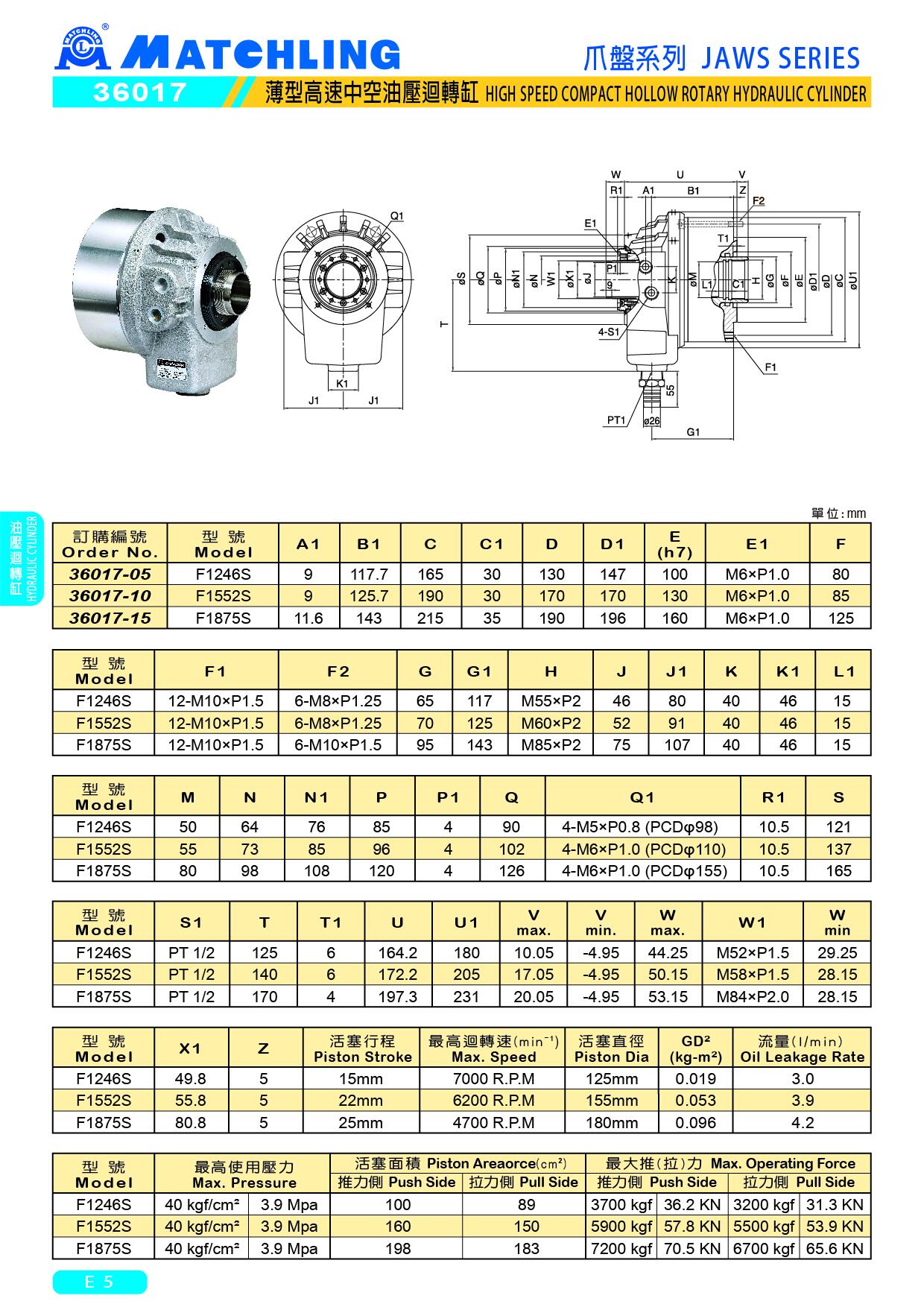 | 36017-05 | F1246S | 9 | 117.7 | 165 | 30 | 130 | 147 | 100 | M6xP1.0 | 80 |