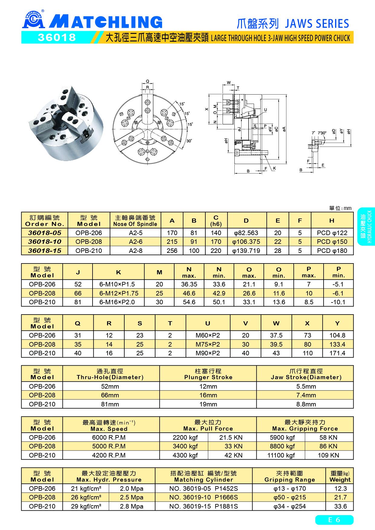 | OPB-206 | 21 kgf/cm² | 2.0 Mpa | NO. 36019-05 P1452S | φ13-φ170 | 12.3 |