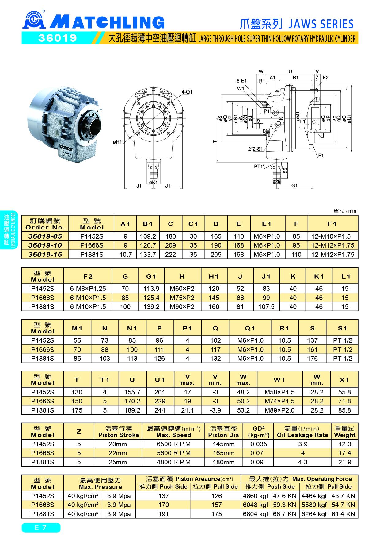 | 36019-15 | P1881S | 10.7 | 133.7 | 222 | 35 | 205 | 168 | M6xP1.0 | 110 | 12-M12xP1.75 |