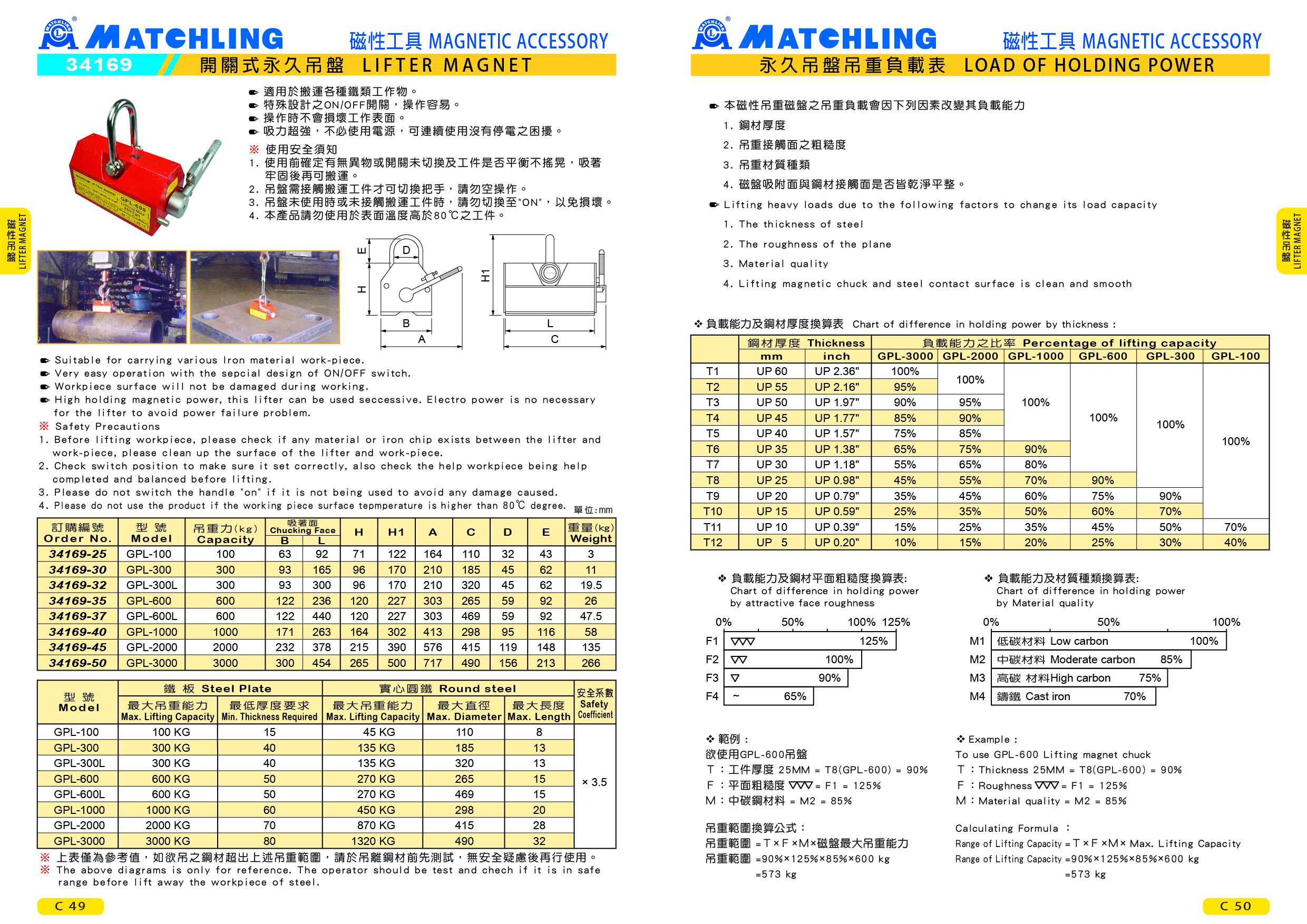 ※本磁性吊重磁盤之吊重負載會因下列因素改變其負載能力