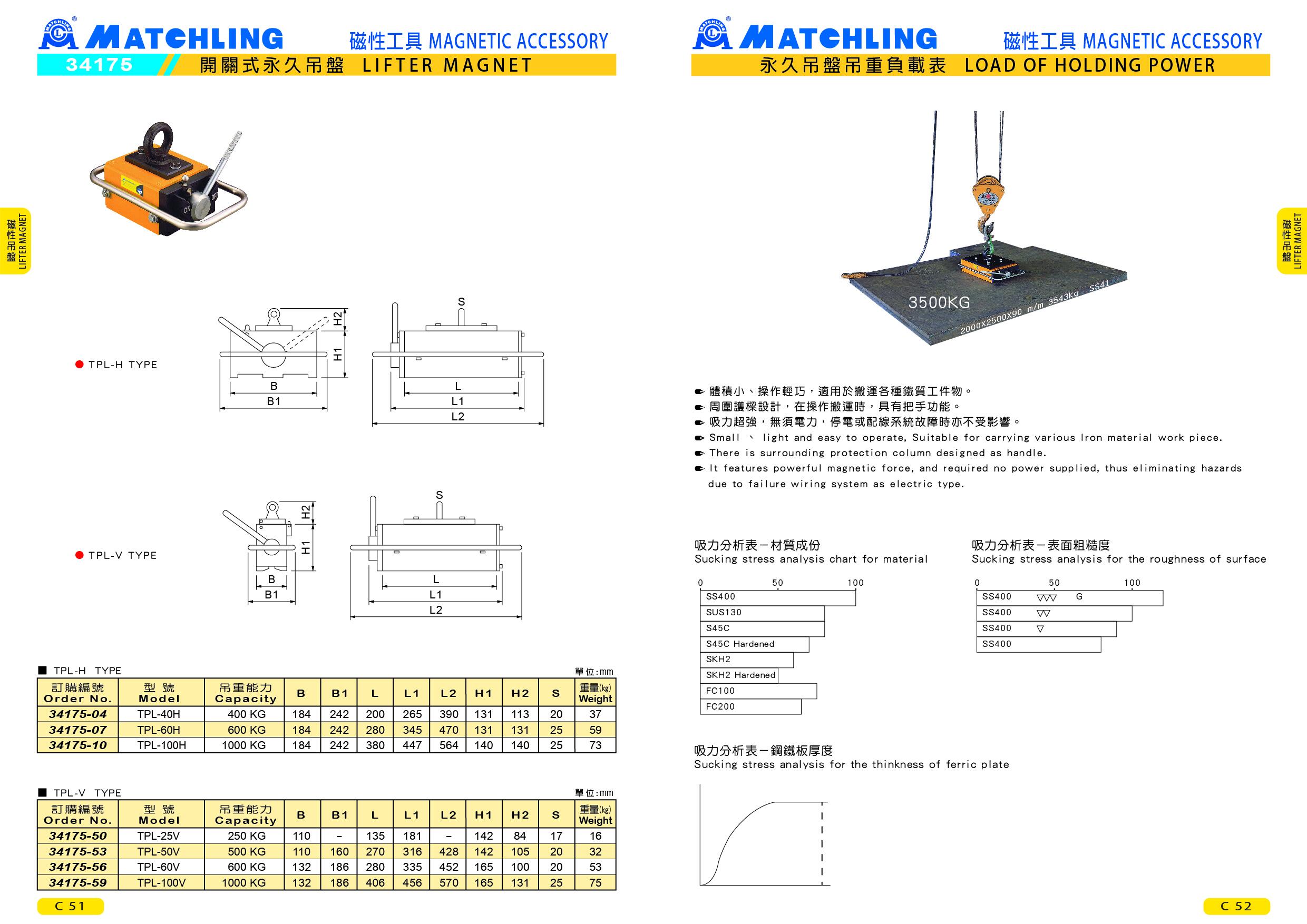 ● 體積小、操作輕巧,適用於搬運各種鐵質工件物。