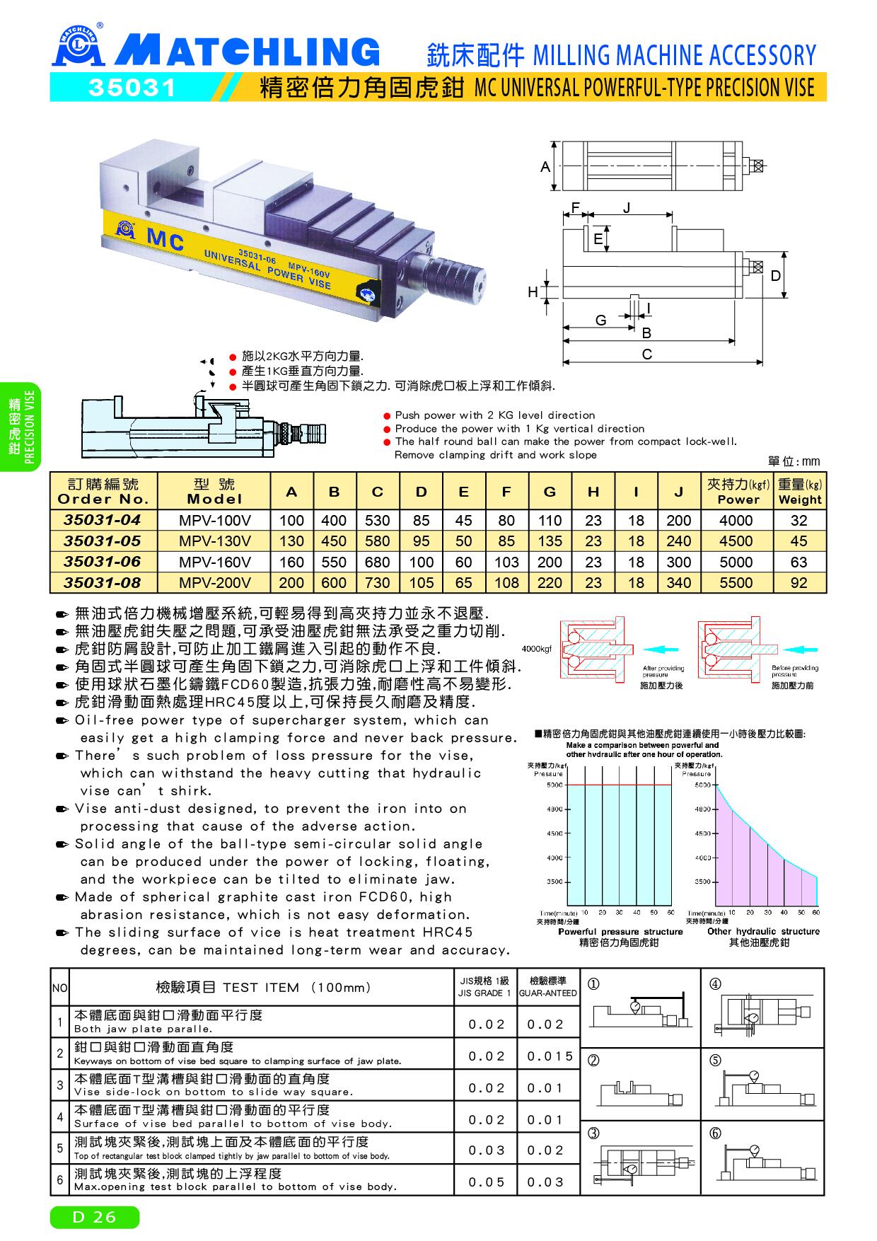 ● 無油壓虎鉗失壓之問題,可承受油壓虎鉗無法承受之重力切削.