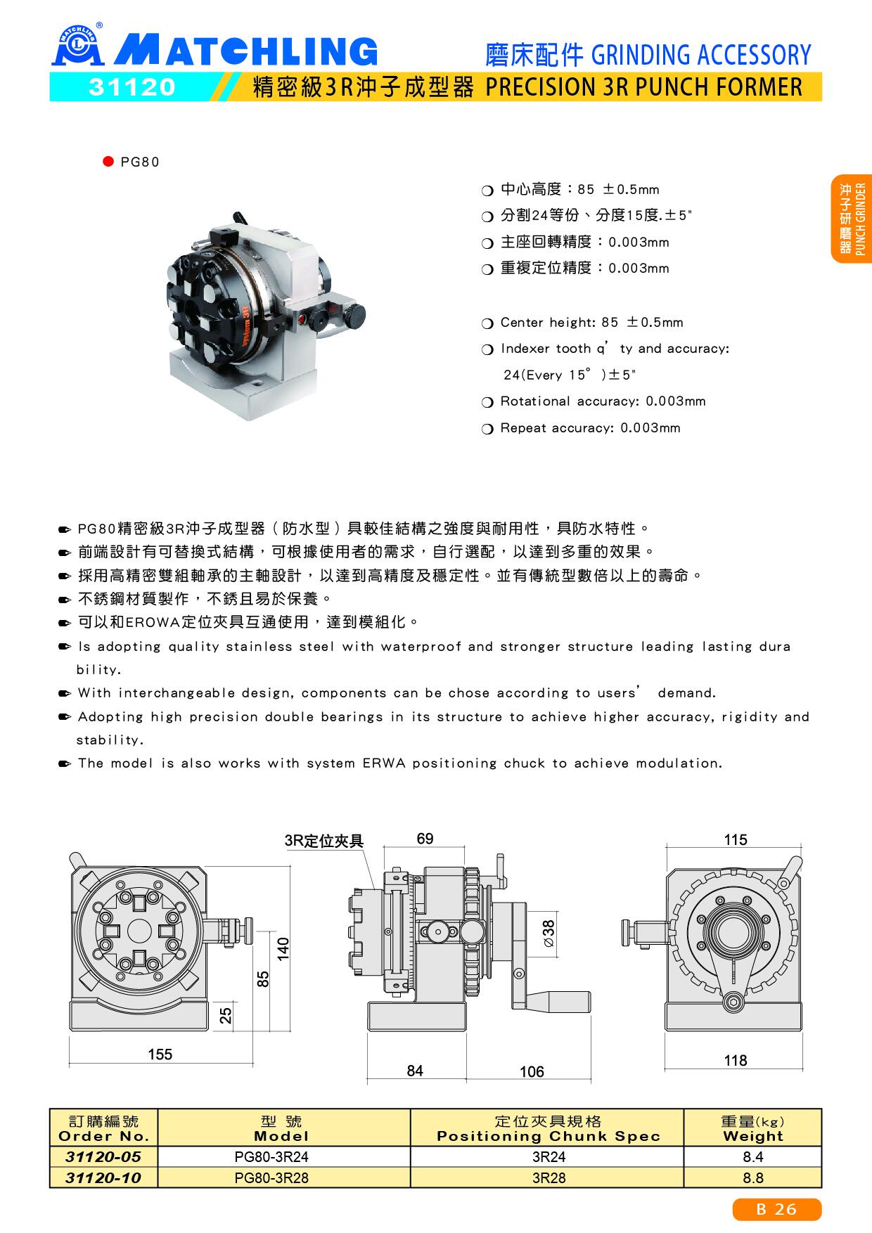 ● PG80精密級3R沖子成型器(防水型)具較佳結構之強度與耐用性,具防水特性。