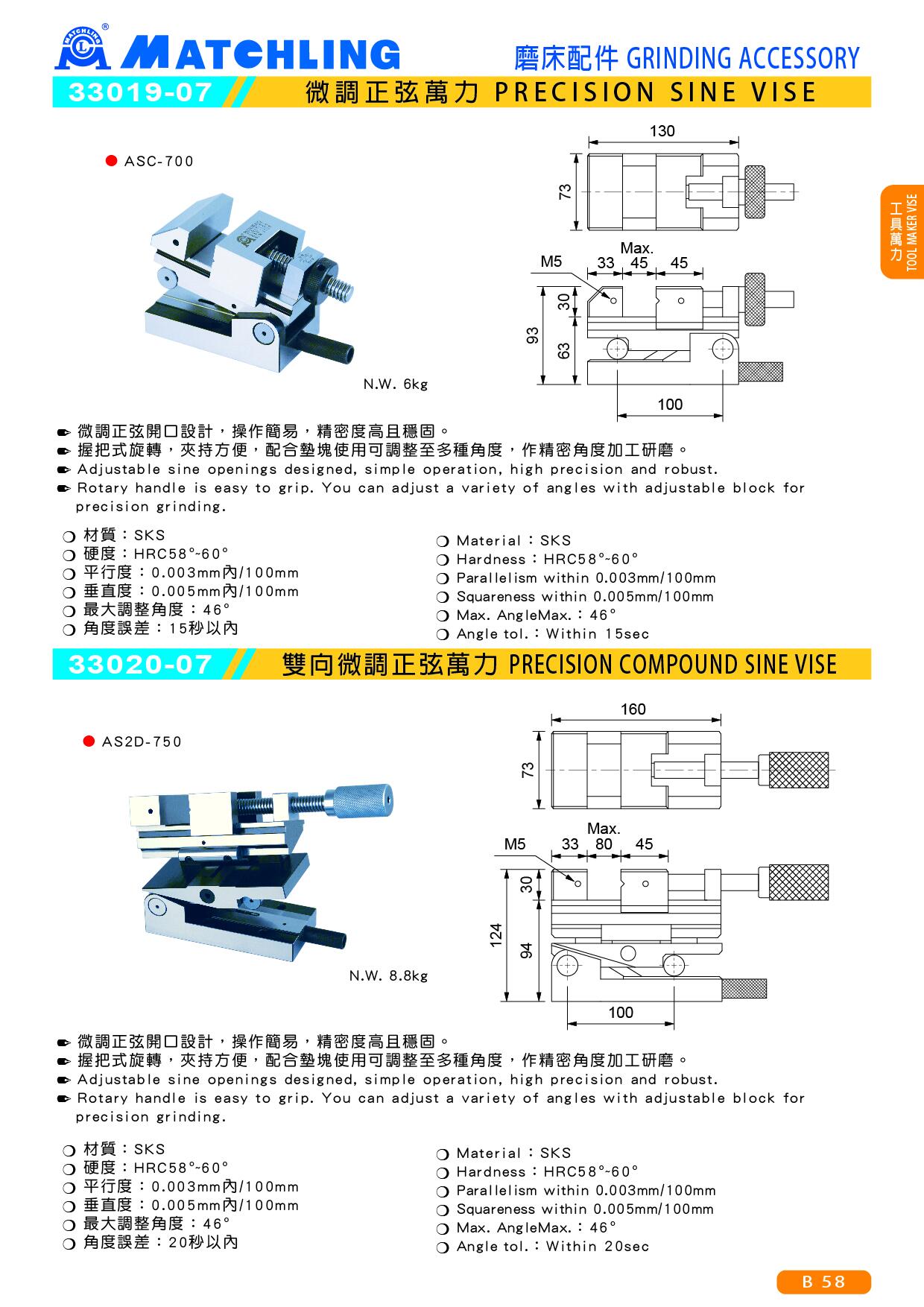 ● 握把式旋轉,夾持方便,配合墊塊使用可調整至多種角度,作精密角度加工研磨。