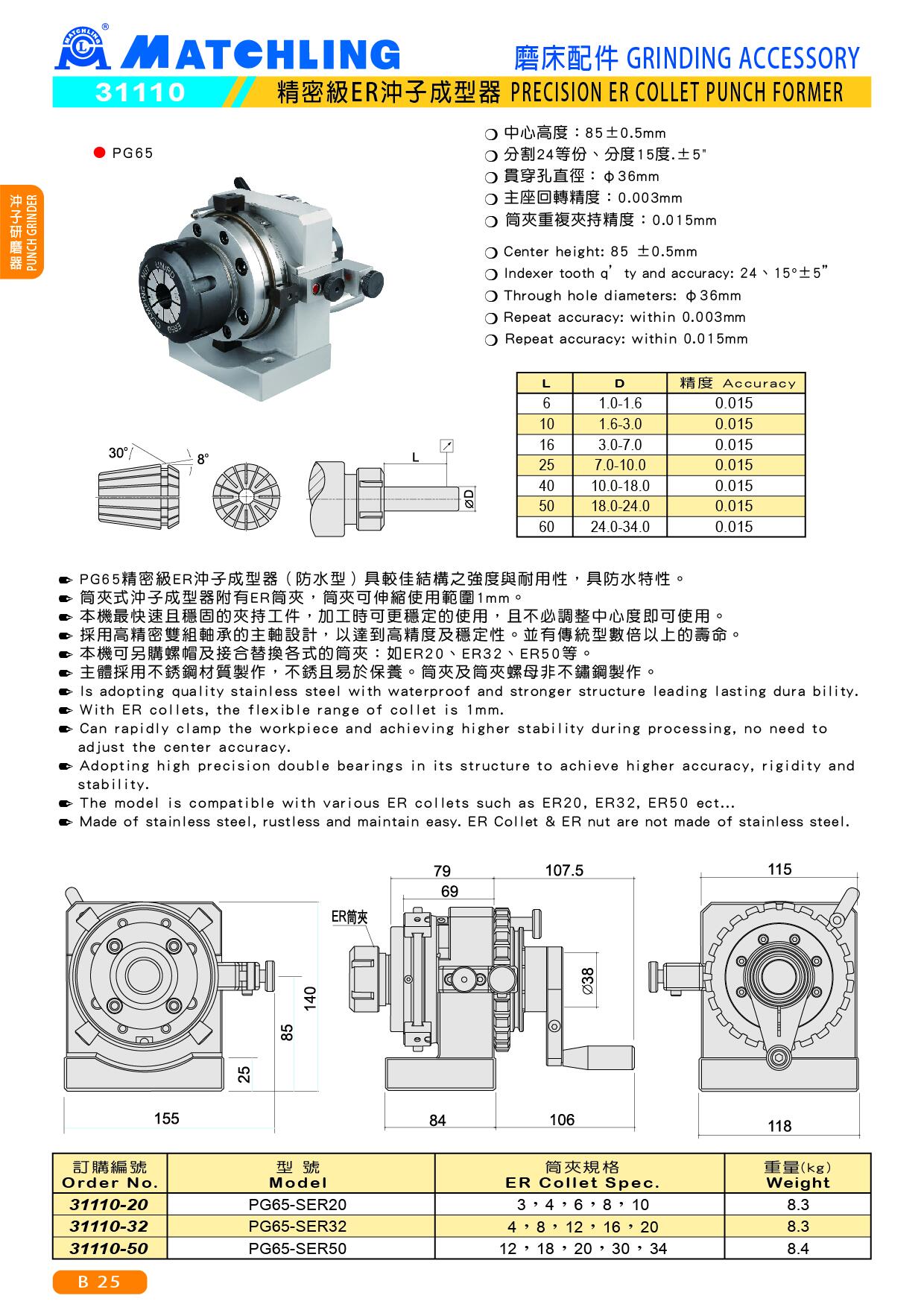 | 訂購編號 | 型號 | 筒夾規格 | 重量(kg) |