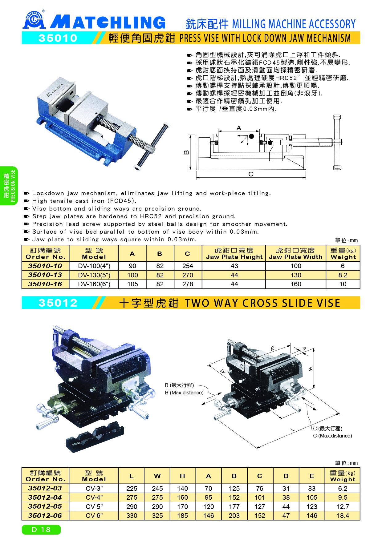| 訂購編號 | 型號 | 虎鉗口高度 | 虎鉗口寬度 | 最大開口 | 重量 (kg) |