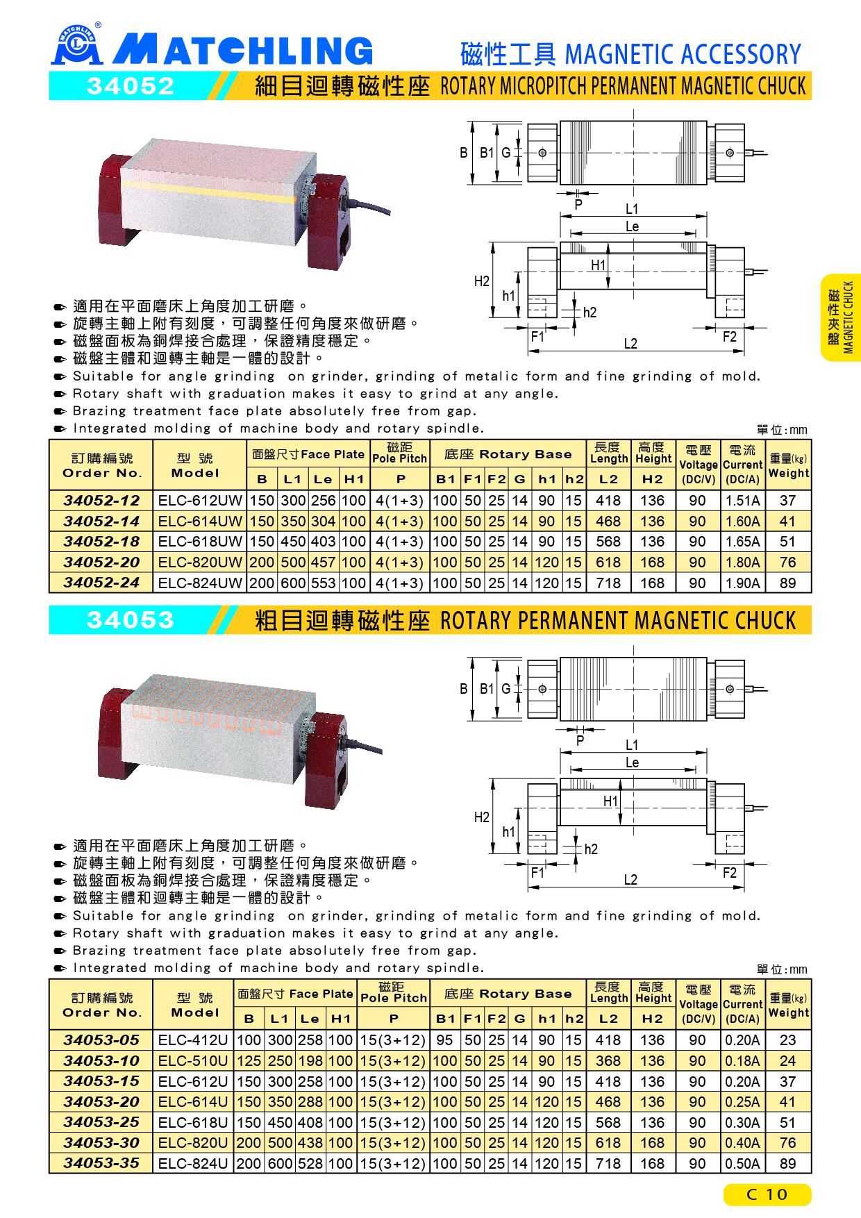 | 訂購編號 | 型號 | 面盤尺寸 | 磁距 | 底座 | 長度 | 高度 | 電壓 (DC/V) | 電流 (DC/A) | 重量 (kg) | ||||||||