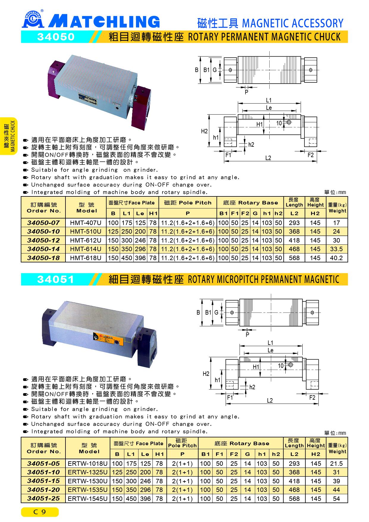 | 訂購編號 | 型號 | 面盤尺寸 | 磁距 | 底座 | 長度 | 高度 | 重 量(kg) | ||||||||