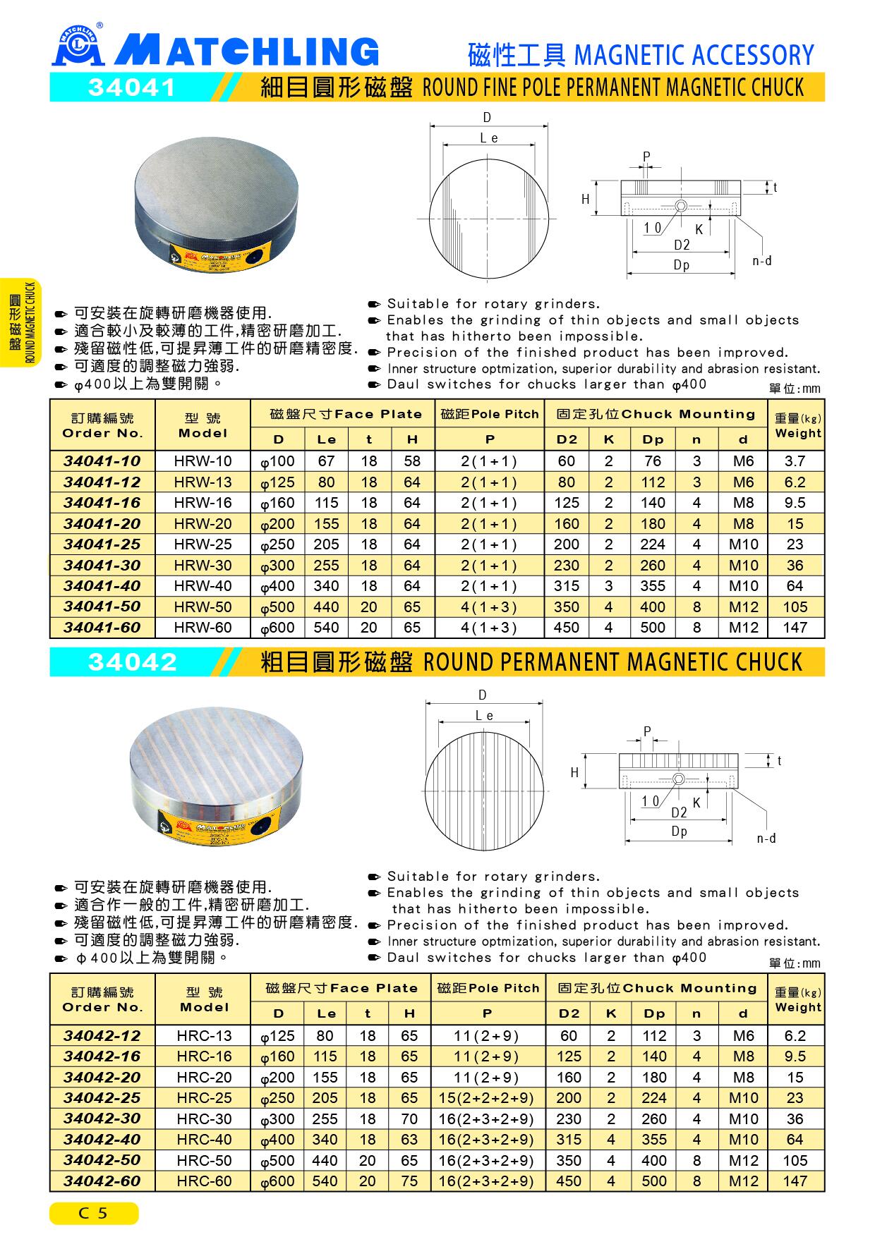 ● 殘留磁性低,可提昇薄工件的研磨精密度.