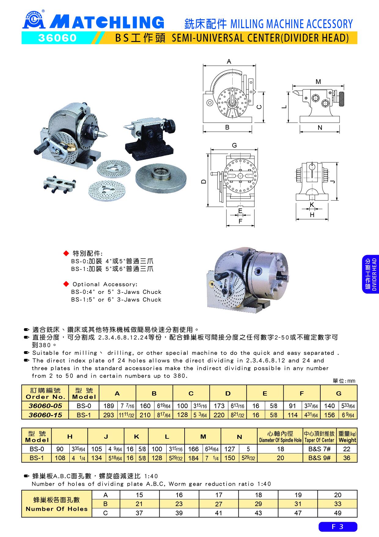 ● 直接分度,可分割成 2.3.4.6.8.12.24等份,配合蜂巢板可間接分度之任何數字2~50或不確定數字可到380。
