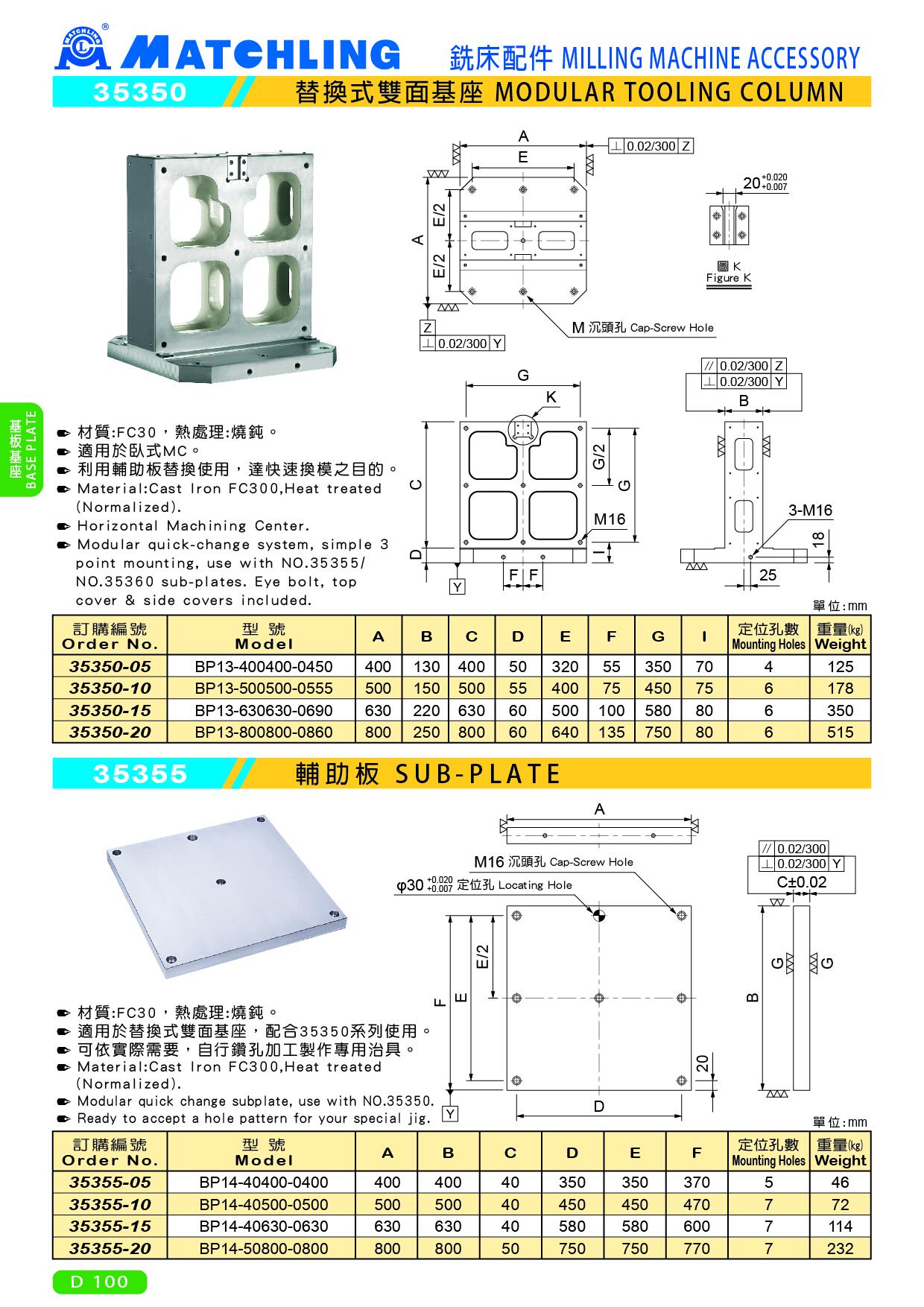 | 訂購編號 | 型號 | A | B | C | D | E | F | 定位孔數 | 重量 (kg) |