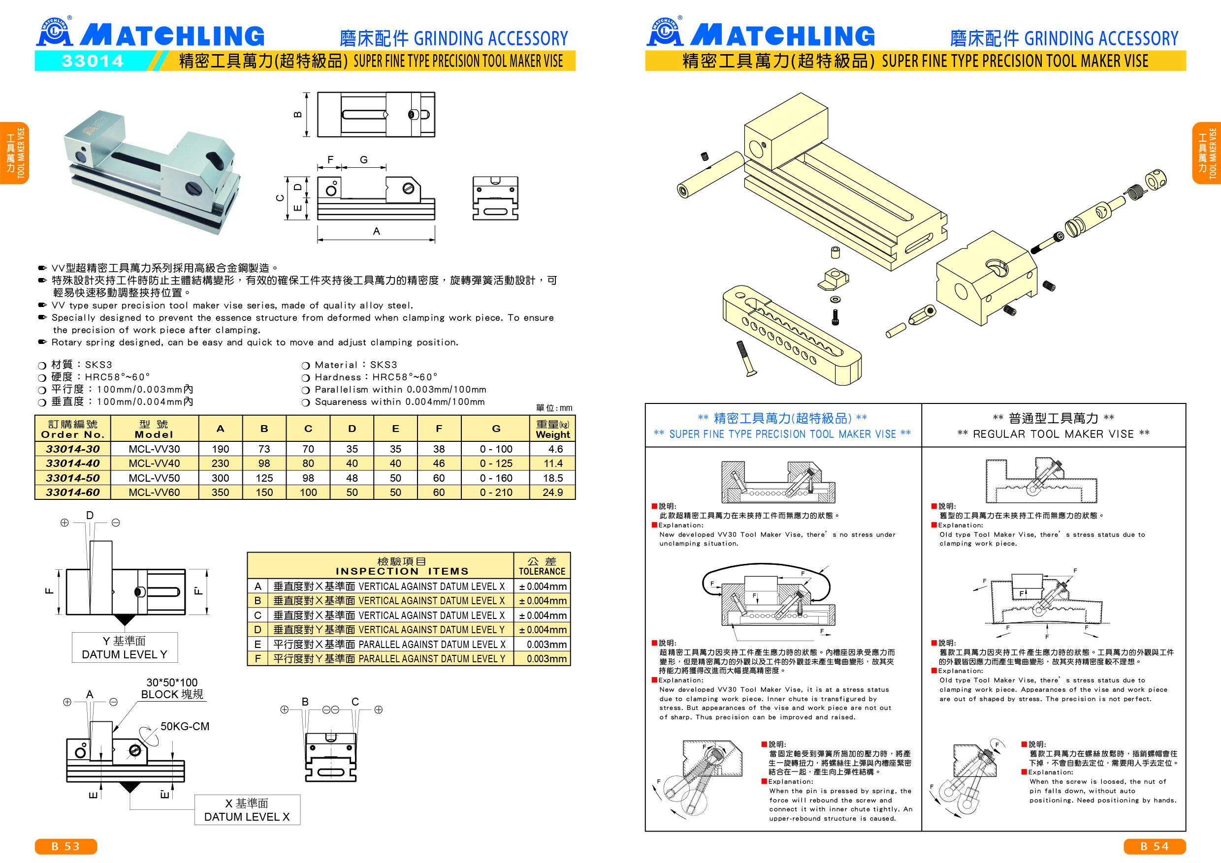 ● VV型超精密工具萬力系列採用高級合金鋼製造。